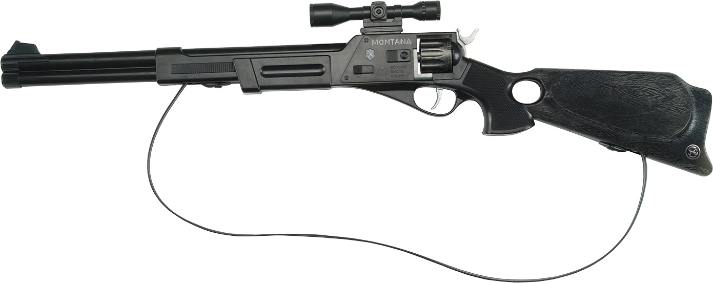 12 Schuss Gewehr mit Zielrohr. Westerheld in Rollenspiel oder auf der Faschingsparty. Ab 6 Jahren.