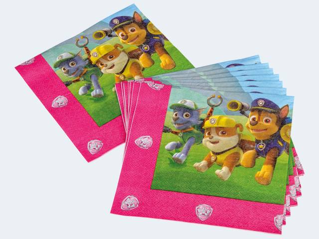 20 Servietten Paw Patrol pink 33x33cm 3-lagig - 19715