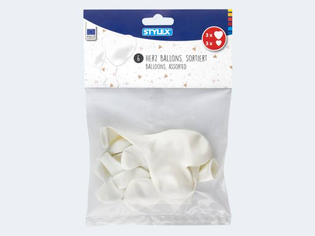 6 Herzballon weiss 2 verschiedene Größen - 14762
