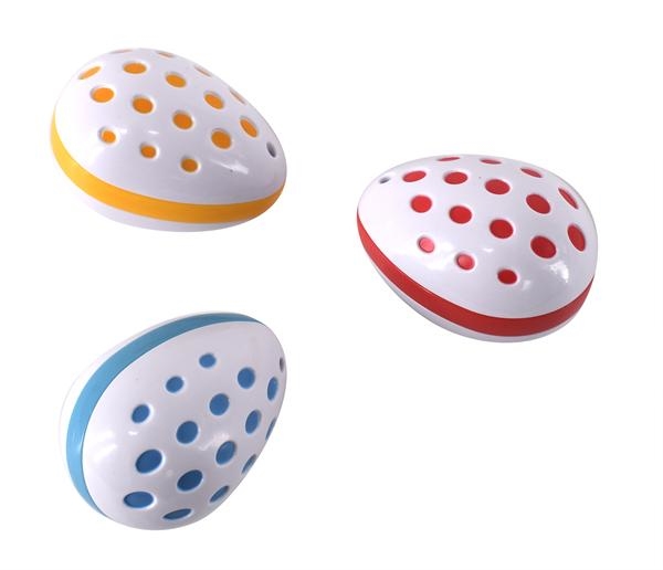''Das legt der Osterhase das ganze Jahr gern ins Nest: unser innovatives Schüttel-Ei mit den bunten Noppen liegt nicht nur fest und sicher in Kinderhand, sondern fördert zusätzlich die Entwicklung des Tastsinns. Alleine oder in lustiger Horde| sanft bewegt oder wild geschüttelt: das unverwüstliche Noppen-Ei ist der ideale Begleiter für kleine Welt-Entdecker! Ab 6 Monate Größe: ca. 60 mm, Farbänderungen vorbehalten''