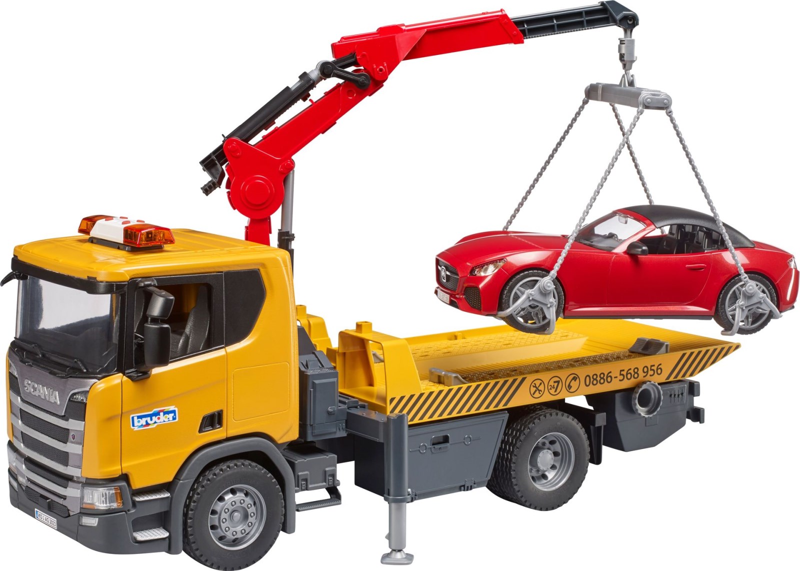bruder 03552 Scania Super 560R Abschlepp-LKW m. L+S Modul + BRUDER Roadster