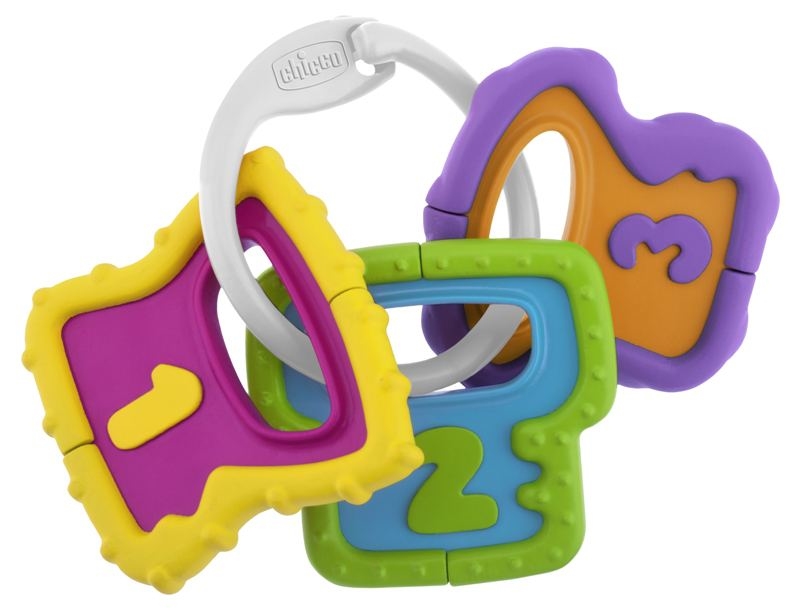 Leicht und einfach zu greifen, ideal für die ersten Monate. Der Schlüsselring besteht aus 3 Schlüsselanhängern, mit Hilfs- und Kontrastfarben, um die Aufmerksamkeit des Kindes zu erregen. Ab 3 Monaten.
