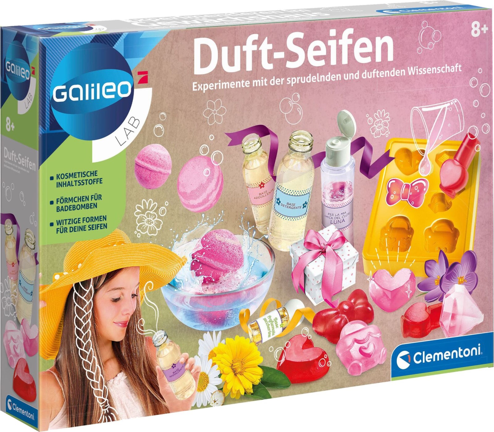 ''Ein ''duftendes wissenschaftliches Set, das phantastischen Kreationen und handgemachten Seifen Leben einhaucht! Das Set enthält das Grundmaterial und alles, was man braucht, um zu experimentieren und mit viel Spaß handgemachte Seifen und viele duftende Produkte herzustellen. Das reich bebilderte Handbuch leitet Kinder dazu an, die Wissenschaft der Seifen mit Experimenten zu entdecken, die absolut sicher durchgeführt werden können! In Italien hergestellt.''''''