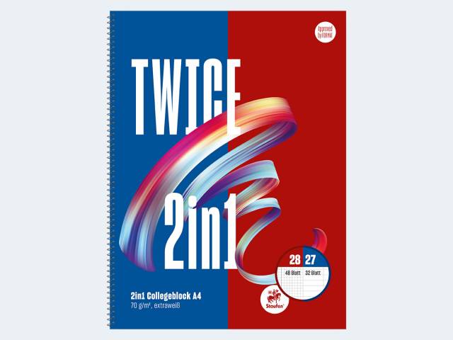 Collegeblock A4/80 Twice 80g 2 Lineaturen - Eine Verkaufseinheit = 5 Stück - 608558000