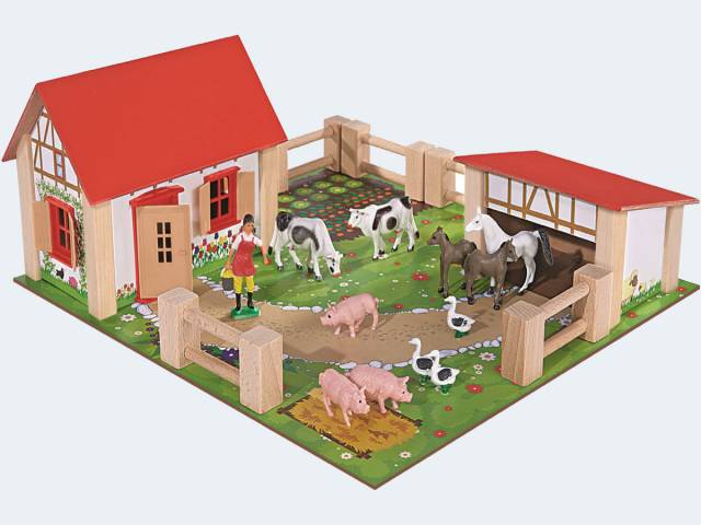 Eichhorn Bauernhof 2 Gebäude, Figuren Zaun 36x39cm - 100004304