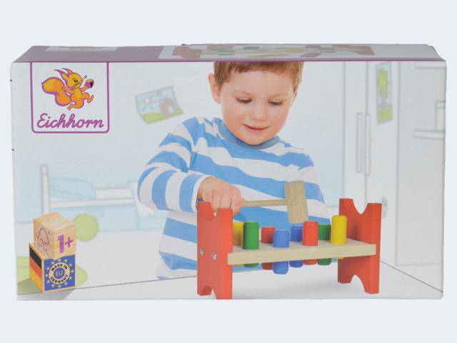 Eichhorn Klopfbank 27cm Holz bunt 10 Stöpsel - 100027005
