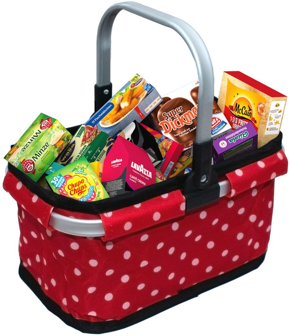 Einkaufshorb gefüllt mit hochwertigen Markenminiaturen. Ab 3 Jahren. Maße ca. 26x17x16 cm.