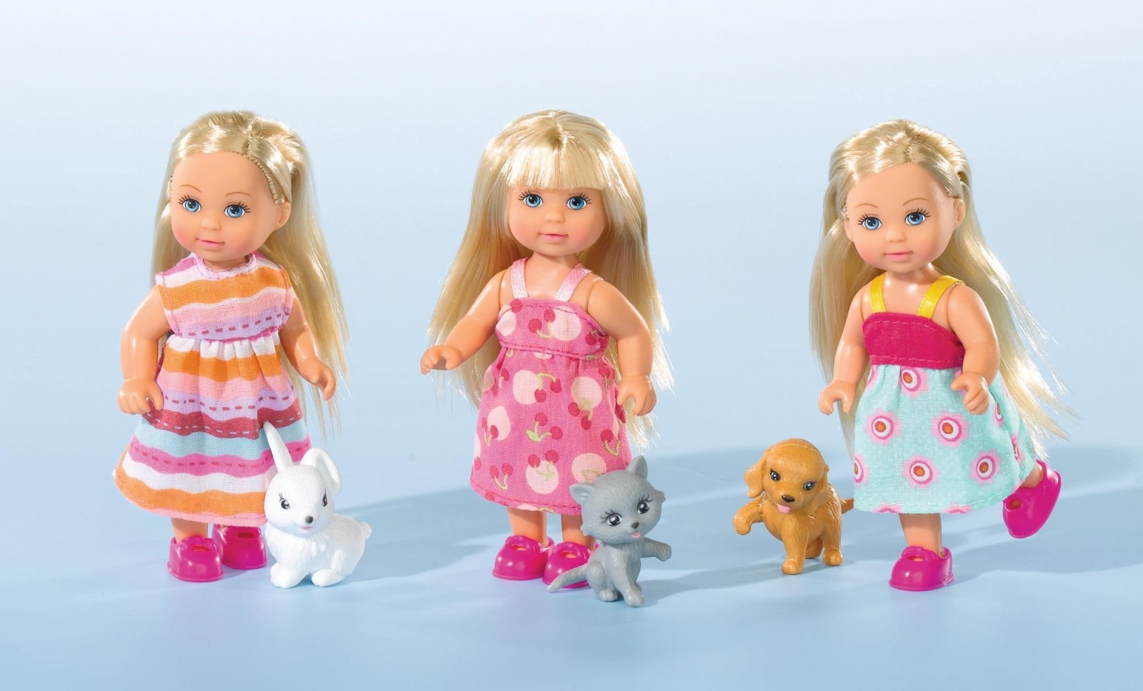Die süße kleine Evi kümmert sich um ihre Haustiere. Sie trägt ein tolles Outfit und bringt ein Haustier als Hund, Hase oder Katzen mit. Die Evi LOVE Pet Friends ist 12cm groß und für Kinder ab 3 Jahren geeignet.