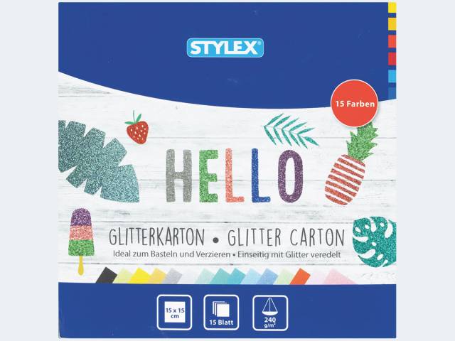 Glitzerkarton 15x15cm 15 Blatt kopfgeleimt - 46470