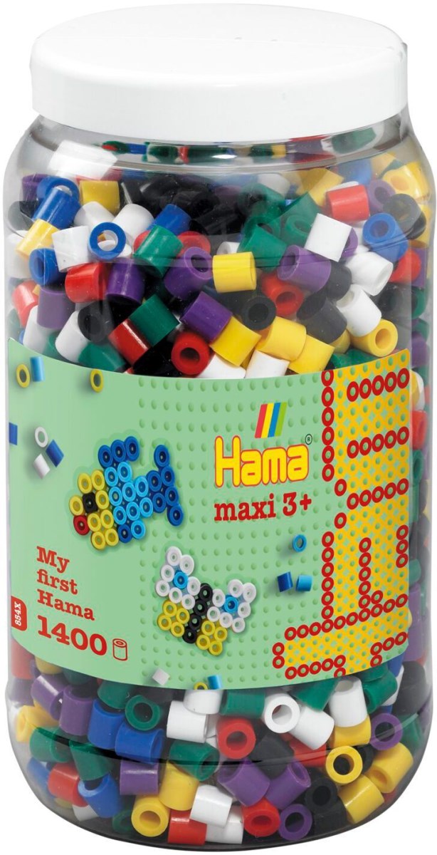Hama® Bügelperlen Maxi - Vollton Mix 1400 Perlen (6 Farben) in Aufbewahrungsdose - 8540