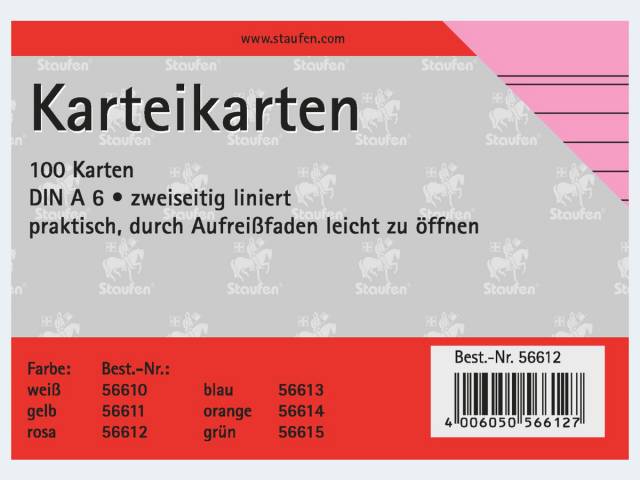 Karteikarten A6/100 rosa liniert - 56612