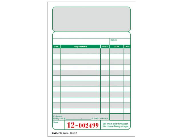 Kassenblock 2x50Bl - Eine Verkaufseinheit = 10 Stück - 2952F