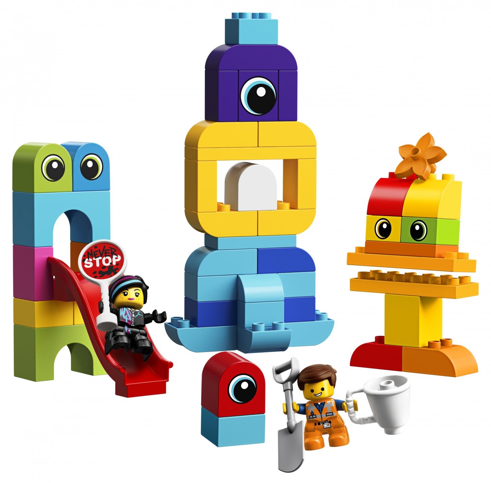 Zeige deinem Vorschulkind mit dem Bauset „Besucher vom LEGO® DUPLO® Planeten“ die bunte und kreative Welt aus THE LEGO® MOVIE 2™. Mit diesem Set können kleine Fans von Emmet und Lucy den beiden helfen, sich gegen die leicht zu bauenden Alien-Eindringlinge zu wehren. Vermische die großen farbenfrohen LEGO DUPLO Steine miteinander, sodass dein Kind weitere, ganz neue Aliens bauen kann und auf seinem Weg, der nächste Baumeister zu werden, ganz nebenbei Fantasie und feinmotorische Fähigkeiten entwickelt. Das Set enthält zwei LEGO DUPLO Figuren: Emmet und Lucy sowie vier baubare Alien-Eindringlinge.