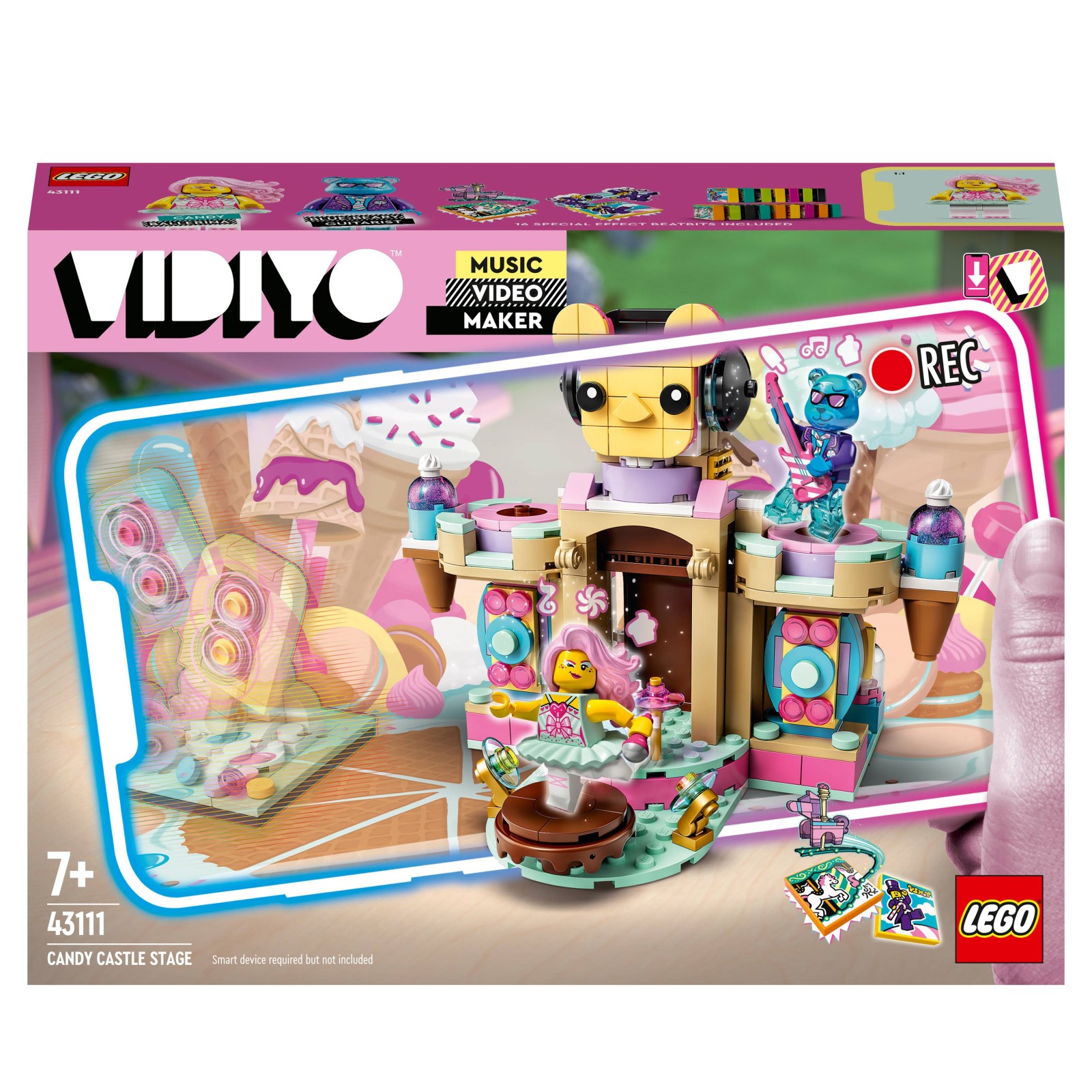 Mit der LEGO® VIDIYO™ Candy Castle Stage (43111) können Kinder ihre eigenen Musikvideos drehen. Das Set beinhaltet 2 Minifiguren mit Zubehör, 14 zufällige BeatBits und 2 spezielle BeatBits.