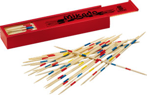Wer kennt es nicht, das Zitterspiel MIKADO? Mit Geduld und ohne Wackeln muss man aus einem Haufen Stäbchen mit den meisten Punkten ziehen. Schön für die MIKADO-Stäbchen: Nach dem Spielen verschwinden sie in einer praktischen Schiebeschachtel aus Holz.