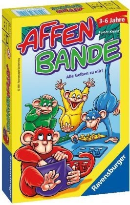Warnhinweis: ACHTUNG! Nicht für Kinder unter 3 Jahren geeignet. Warnhinweis: ACHTUNG! Erstickungsgefahr wegen verschluckbarer Kleinteile. Alle Äffchen purzeln wild durcheinander. Welche Farbe zieht man als nächstes aus dem Beutel? Mit Glück hat man seine Affenbande als Erster zusammen.
