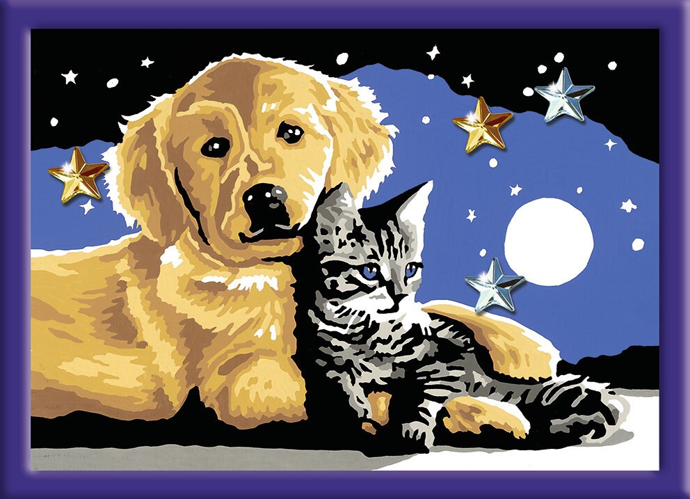 Mit Glitzersteinen zum Verzieren!\nFarbige Motivlinien: Größerer Malspaß & schöneres Ergebnis!\n\nDank der farbigen Motivlinien, welche die Malfelder umranden, können die Kinder das ganze Motiv und die benötigten Farben schneller erkennen. Zudem hat der Pinsel eine gute Führung. So entsteht nach und nach ein perfektes Bild. Am Ende stehen Freude, Stolz und ein Erfolgserlebnis, das die Lust am Weitermalen weckt.