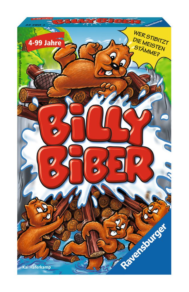 Wer stibitzt die meisten Stämme?Weitere ProduktinformationenBilly, pass auf! Immer wieder schieben die frechen Biberkinder Holzstämme aus dem Stapel. Manchmal gelingt es, doch wenn es Billy merkt, sind Meckerchips fällig. Wer stibitzt die meisten Stämme?Inhalt/Ausstattung1 Flusslandschaft, 1 Biber aus Holz, 37 Holzstämme, 1 Stab, 8 Meckerchips
