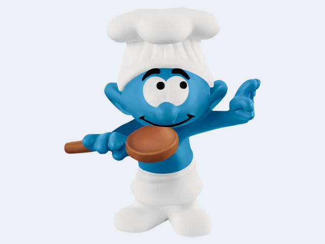 Der Schleich® Koch Schlumpf hat in seiner Küche alle Hände voll zu tun!