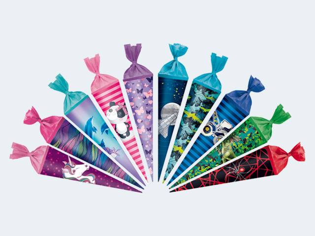 Schultüte 35cm m. Kreppapier rund - Ein Stück wird nach dem Zufallsprinzip zugesendet! - 50035090