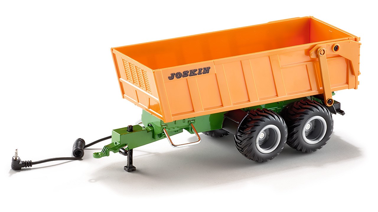 Fernsteuerbarer Tandem-Achs-Anhänger in Verbindung mit alle SIKU CONTROL Fahrzeugen mit Anhängerkupplung und Datenbuchse, Ideal als Ergänzung zu SIKU CONTROL Traktoren zum Nachspielen von landwirtschaftlichen Szenen - Umfangreiche Funktionen: Steuerbar über Fernsteuermodul, Elektronisch, kippbare Mulde, Zuschaltbare LED-Lichter - Energieversorgung dank mitgeliefertem Datenkabel durch Verbindung mit dem SIKU CONTROL Fahrzeug - Hohe Stabilität: Fahrgestell aus Metall, Mulde aus robustem Kunststoff, Für Fliesen, Parkett oder auch Teppich geeignet, Sehr gute Rolleigenschaften durch Reifen aus Gummi - Lieferumfang: SIKU 6780 Tandem-Achs-Anhänger inkl. Datenkabel, Maßstab: 1:32, Material: Metall- und Kunststoffteile, Abmessungen: 25,7 x 9,6 x 10,3 cm, Gewicht: 0,65 kg, Farbe: Orange, Serie: SIKU CONTROL