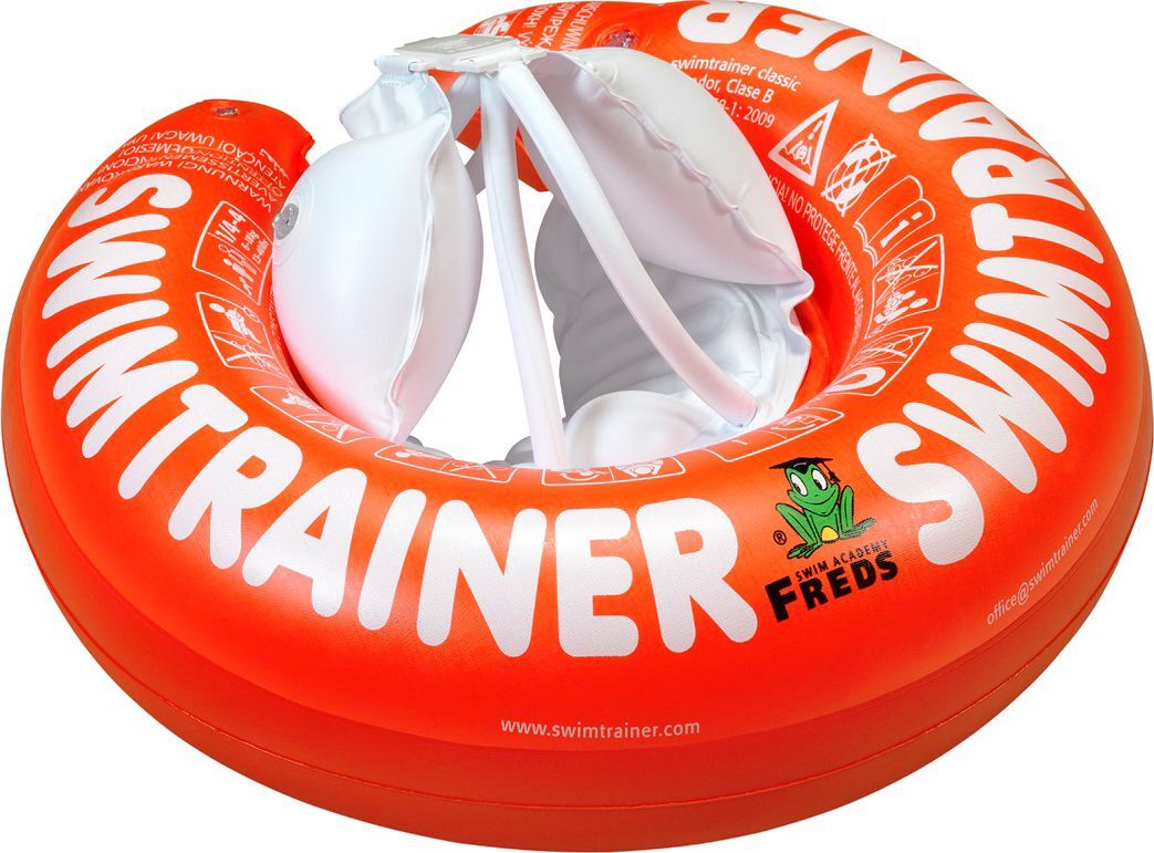 Dieser Swim-Trainer Classic wird zur Gewöhnung an das Wasser und zum Erlernen der richtigen Beinbewegung (Froschbewegung) eingesetzt. Dieser Trainer wurde für Babys und Kleinkinder mit einem Gewicht von ca. 6 kg bis ca. 18 kg konzipiert und ist für Anfänger bestimmt. Für Kleinkinder ab 3 Monaten. Durchmesser: ca. 42 cm.