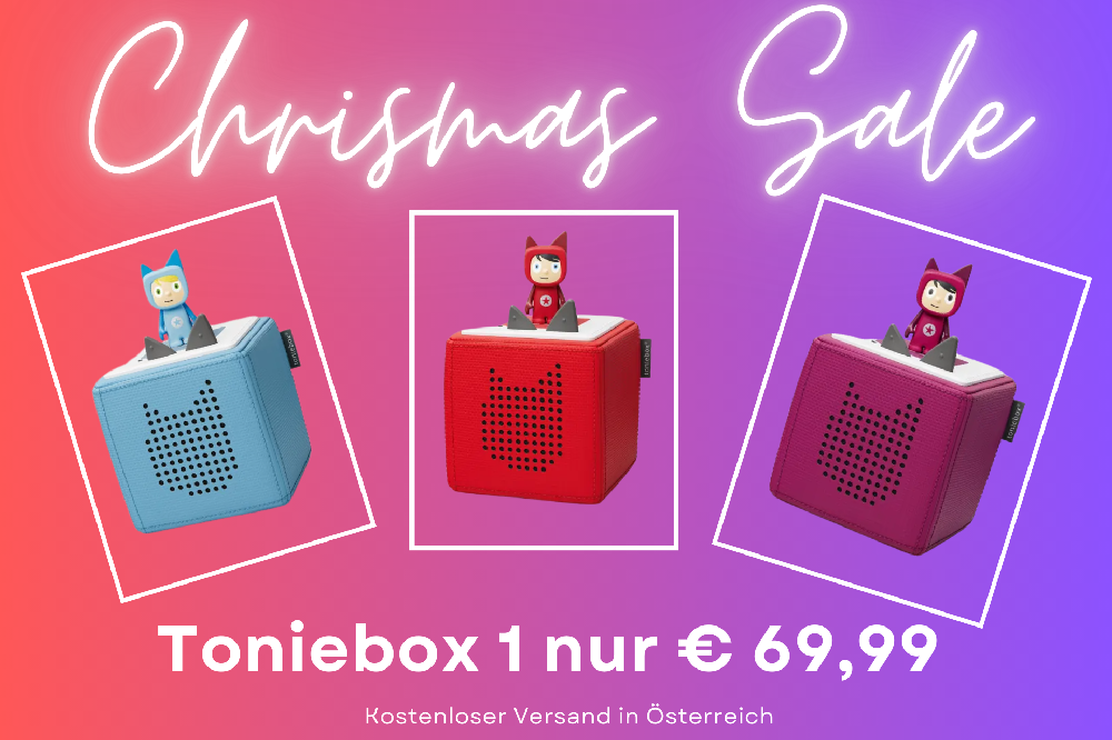 - 1x Toniebox mit Ladestation (100 V–240 V, 0.5 A)
