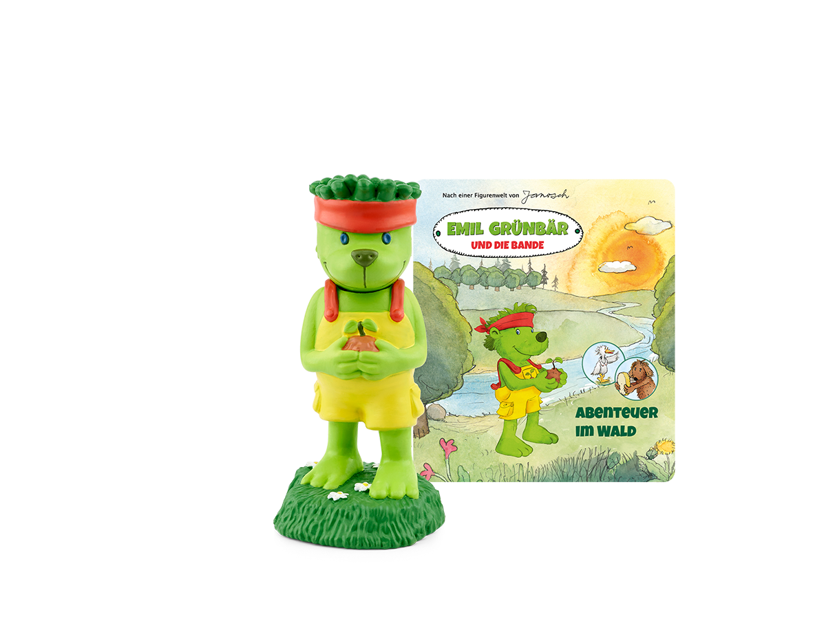 Exklusiv für tonies® wurde ein besonderes Mitglied des bunten Janosch-Kosmos neu belebt: Emil Grünbär, ein gutmütiger Typ, dem sehr viel an der Natur und ihrem Erhalt gelegen ist. Gemeinsam mit der eleganten Dolli Graugans und dem schläfrigen Hund Rüdi von Lieberbaum macht er sich auf, weil ihn das Abenteuer kitzelt. Dabei stellen sie fest, dass sie – nicht zuletzt wegen uns Menschen – einiges im Wald in Ordnung bringen müssen.