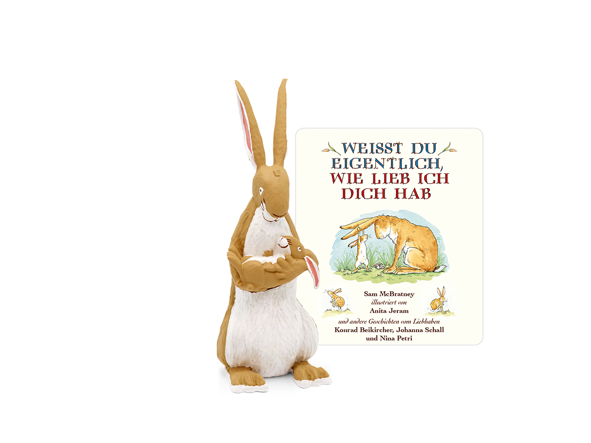 Die Geschichte vom kleinen Hasen, der ganz sichergehen will, dass der große Hase auch weiß, wie sehr er ihn lieb hat, ist eine Geschichte, die viele Eltern und Kinder bereits in ihr Herz geschlossen haben. Auf diesem Tonie findet ihr zusätzlich noch Lieder und weitere Geschichten von Anita Jeram.