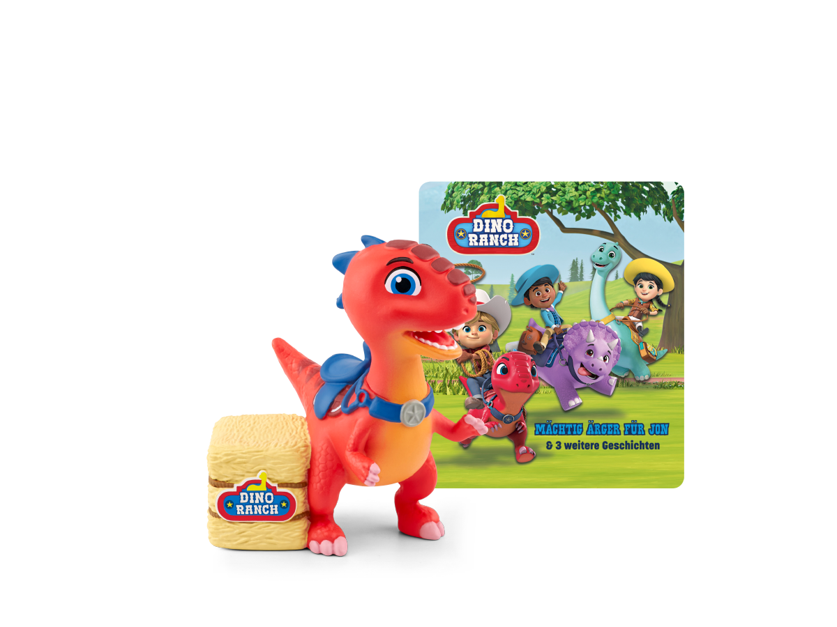Hörfigur für die Toniebox:Tonies sind Hörfiguren für die Toniebox. Sie machen Hören anfassbar, denn mit ihnen bedient man die Toniebox. Man kann sie aber auch sammeln und mit ihnen spielen. Um der Musik zu lauschen, stellt man die Hörfigur einfach auf die Toniebox.Yee Haw! Willkommen auf der Dino Ranch - Hier leben Ma, Pa und ihre drei Kinder Jon, Min und Miguel. Gemeinsam bewirtschaften sie die Ranch und kümmern sich liebevoll um die Dinosaurier. Immer an der Seite der Kinder sind ihre eigenen Dinosaurier und besten Freunde: Blitz, Clover und Tango. Sie genießen das aufregende Leben als Rancher und die Abenteuer in der freien Natur. Ganz egal, ob es darum geht, einen entlaufenen Dino einzufangen, die richtige Dino-Medizin zu finden oder ein Dino-Ei zu schützen: Die Dino-Ranchers halten zusammen, finden immer eine Lösung und haben dabei jede Menge Spaß!