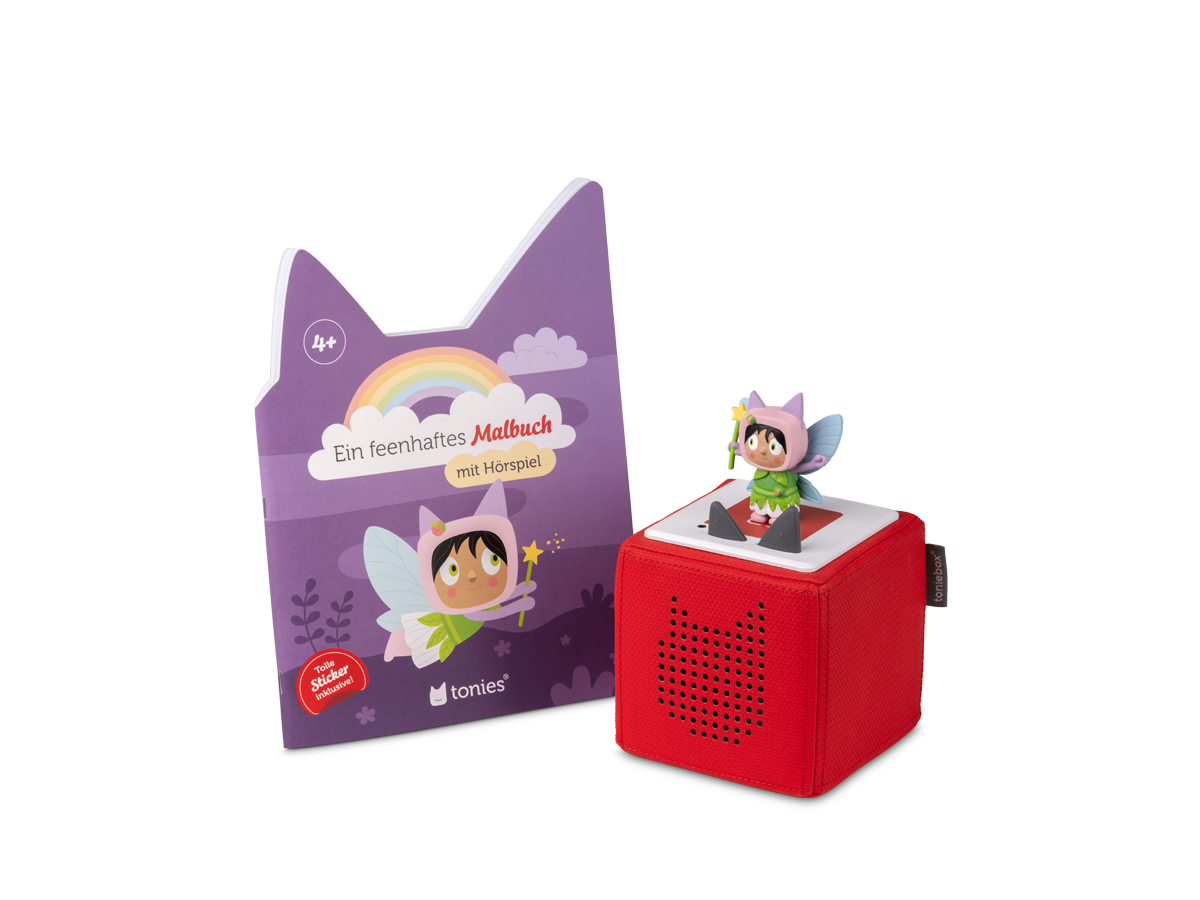 Werde Teil der GeschichteDeine Fantasie füllt die magische tonies® Welt im Malbuch mit Farbe. So wird dein Buntstift zum Zauberstab. Der Kreativ-Tonie Fee auf der Toniebox erzählt dir die Geschichte von der kleinen Fee und nimmt dich mit auf große Abenteuer.