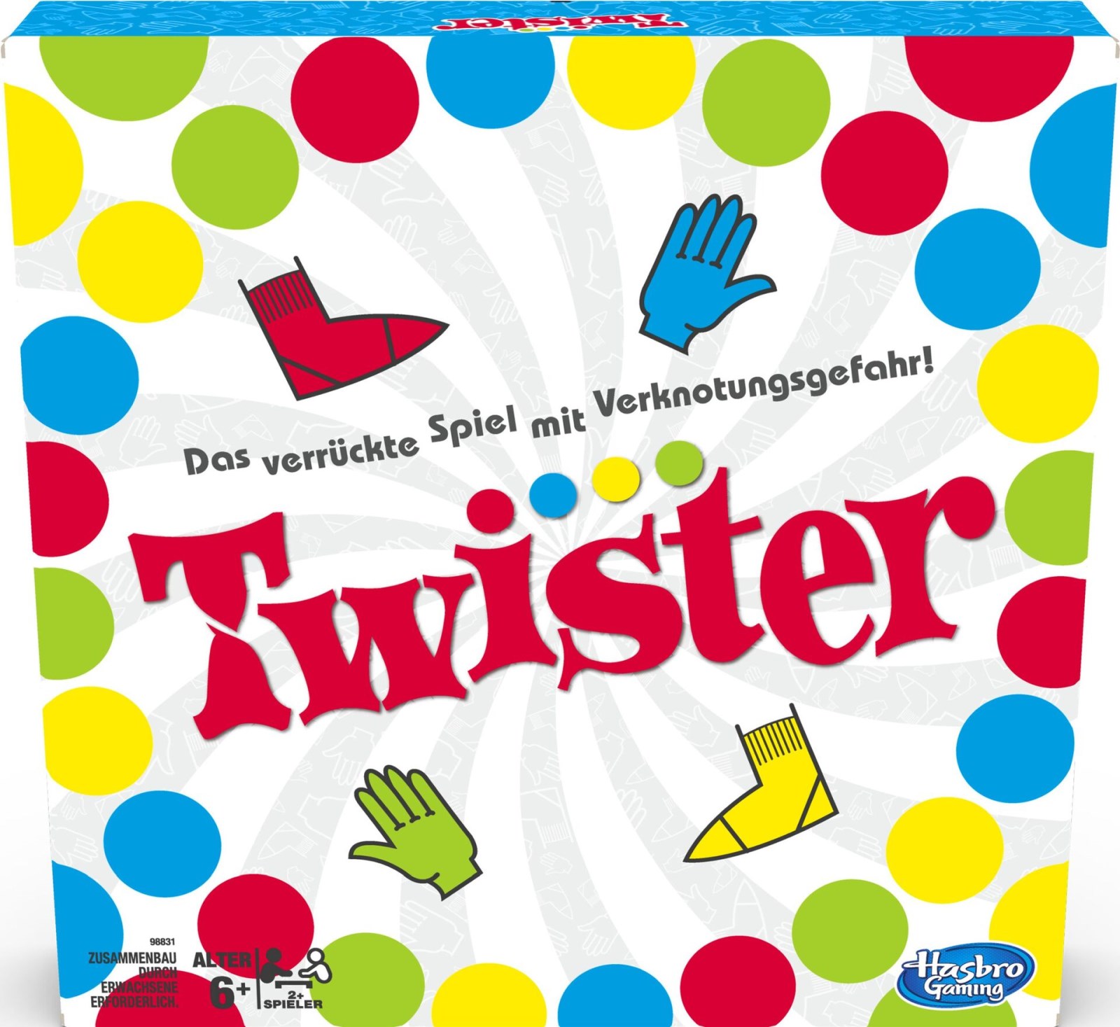 DAS VERRÜCKTE SPIEL MIT VERKNOTUNGSGEFAHR: Twister sorgt für jede Menge Spaß, wenn die Spieler versuchen, ihre Hände und Füße auf die Matte zu setzen, ohne dabei umzufallen. DAS KULTIGE TWISTER-SPIEL: Erinnern Sie sich noch daran, selbst als Kind Twister gespielt zu haben? Dieses Spiel zeigt das klassisch-vergnügliche Twister, bei dem sich die Spieler verbiegen und verrenken, um im Spiel zu bleiben. Für Kids ab 6 Jahren. INDOOR-AKTIVITÄT FÜR KIDS: Wenn Kinder nach Bewegung und jeder Menge Spaß rufen, ist das klassische Twister-Spiel immer eine gute Wahl. SPIELEN IN TEAMS: Die Twister-Spielanleitung enthält Regeln für spannende Teamspiele, einschließlich Tipps für ein Twister-Turnier